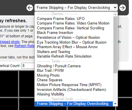 사이트 상단의 선택 창을 클릭하면 여러가지 다른 테스트들도 가능함.