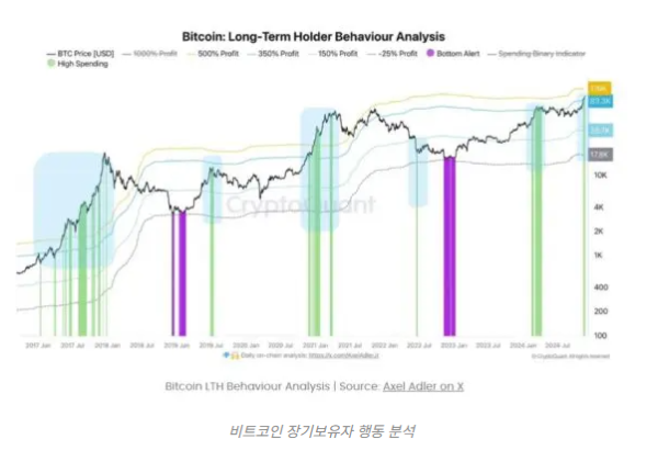 크립토퀀트의 애널리스트 악셀 애들러는 장기 보유자들의 활동이 시장 안정에 중요한 역할을 한다고 언급했다. 그는 만약 비트코인 가격이 11만 9000달러를 돌파할 경우, LTH의 이익률이 500%를 넘어서며 대규모 매도 압력이 발생할 가능성을 경고했다.