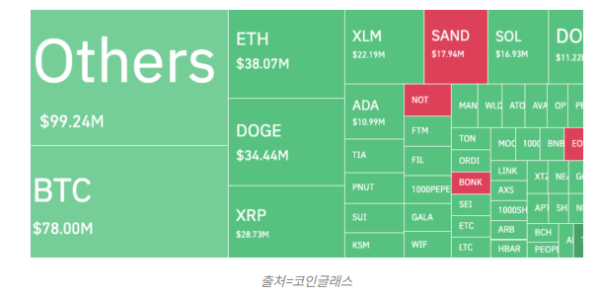 코인글래스에 따르면 지난 24시간 동안 비트코인은 약 7800만달러(약 1090억원)가 청산됐으며, 그중 롱(매수) 포지션이 약 68%를 차지했다. 비트코인의 상승세가 주춤하자 알트코인의 가격 변동이 심화됐다. 같은 기간 전체 가상자산의 청산 금액은 약 4억9340만달러(약 6900억원)에 달했다. 비트코인을 포함해 20개의 주요 가상자산으로 구성된 코인데스크 20 지수는 0.26% 하락했다.