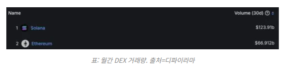 솔라나, 월간 DEX 거래량 1000억달러 돌파⋯ “이더리움 앞질러”