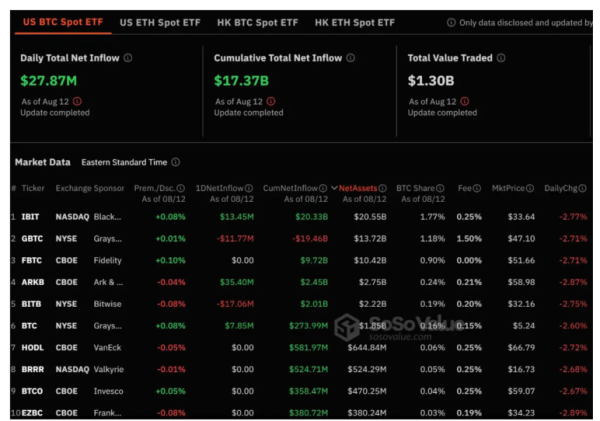 한편, 비트코인(BTC) 현물 ETF는 2787만 달러의 순유입을 기록했다.