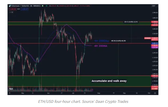 이전 게시물에서 다안 크립토 트레이드는 이더리움 가격의 회복 경로에서 극복해야 할 주요 수준을 보여주는 차트를 공유했다. 분석에 따르면, 이더리움이 상승세를 유지하기 위해서는 2672 달러에서 3730 달러에 걸친 공급 지대에서 나오는 저항을 극복하고 3350 달러 이상을 확고히 유지해야 한다고 한다.