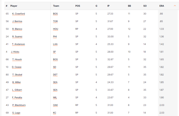 2 두번째 첨부 그림은 방어율이 2.0 정도 이하의 선수들 순서입니다