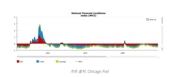 미국 시카고 연방준비은행의 금융조건지수(NFCI)가 느슨해진 금융 환경을 가리키면서, 비트코인(BTC)을 비롯한 위험 자산의 상승 가능성이 높아지고 있다는 분석이 나왔다.