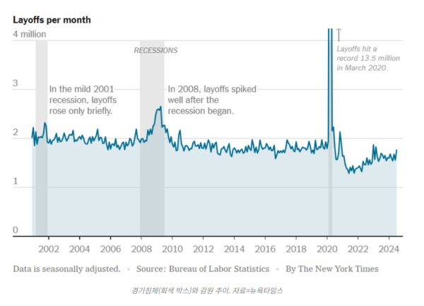 12일(현지 시간) 뉴욕타임스(NYT)는 노동자 해고는 경기 침체가 한창 진행 중일 때 일어나기 때문에 현재의 노동시장에 안심해서는 안된다고 보도했다.