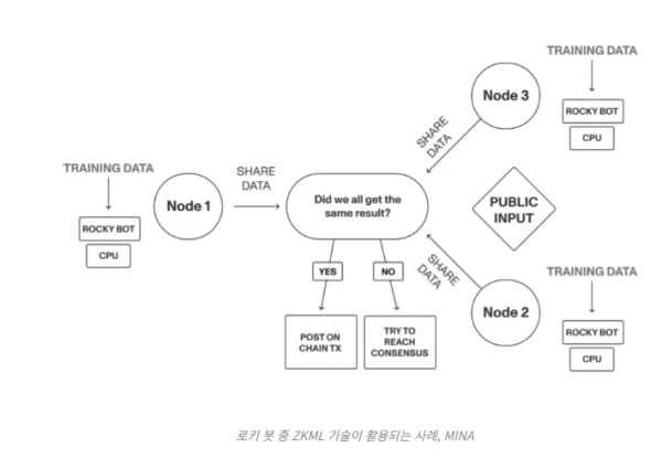 미나 프로토콜은 “이전에는 훈련 데이터, 입력 데이터, 검증을 위한 하드웨어 등이 모든 사용자에게 필요해 로키와 같은 봇을 구축하는 데 복잡성이 뒤따랐다”며 “ZK 증명을 활용하면 최소한의 데이터만 공유해 합의를 이룰 수 있으며, 증명만 검증해 중복 연산의 부담을 덜어낼 수 있다”고 설명했다.