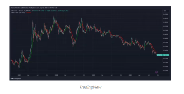 ETH/BTC 비율 0.04 아래 후퇴 2021년 4월 이후 최저 … 추가 하락 가능성
